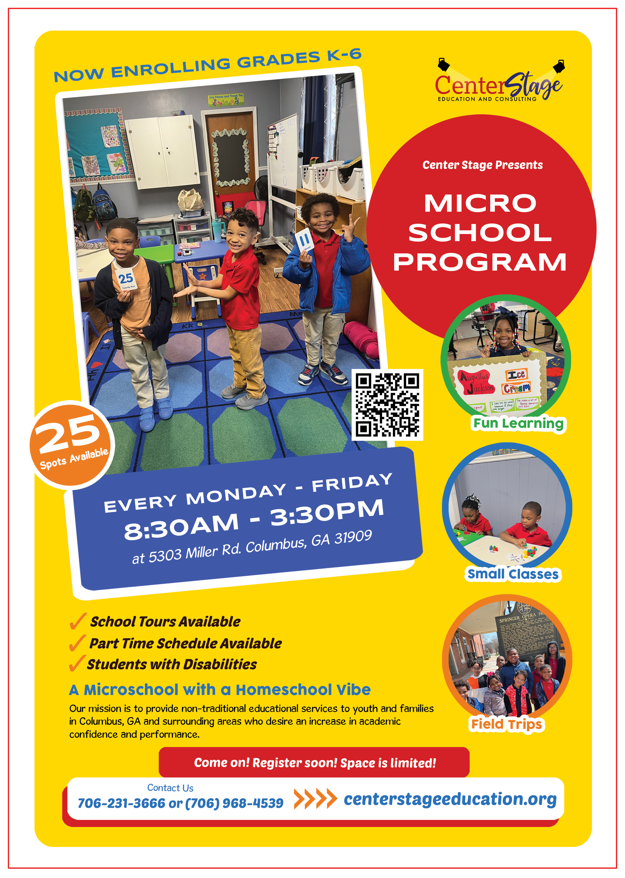 CenterStage Microschool Enrollment Form 1st Enrollment Reenrollment Student Information Child's Name * First Name Last Name Age * Grade * Child's Date of Birth * MM DD YYYY Gender * Male Female Address * Address 1 Address 2 City State/Province Zip/Postal Code Country Parent Information Parent's Name * First Name Last Name Preferred Email * Address (If different than above) Address 1 Address 2 City State/Province Zip/Postal Code Country Phone Number * (###) ### #### Preferred Contact * Email Text Call Emergency Contact Please fill out the names of people you would want contacted in case of an emergency. One person is required, the other two are optional. Emergency Contact #1 * First Name Last Name Emergency Contact #1 Phone Number * (###) ### #### Emergency Contact #2 First Name Last Name Emergency Contact #2 Phone Number (###) ### #### Emergency Contact #3 First Name Last Name Emergency Contact #3 Phone Number (###) ### #### Medical Release In Case of Emergency * In case of emergency do you give the staff at CenterStage Education and Consulting permission to call the ambulance or 911? Yes, I give permission. No, I do not. Does Your Child Have Any Chronic Illness, Specific Medical Condition, or Food Allergies? * Yes No If "Yes" Is Checked Above, List The Condition(s) Below Video and Photo Release Form Video and Photo Release * I authorize CenterStage Education and Consulting to use video footage and photos of my child for promotional purposes only. I DO NOT authorize CenterStage Education and Consuling to use video footage and photos of my child for promotional purposes only. List of People Authorized to Pick Up Your Child from CenterStage * Please add name and phone number of the people that are authorized to pick up your child from CenterStage. (Up to 4 People) Do you need our Extended Day Hours? (Until 5:15) If yes then see staff after signup for more information. * Yes No Signature Signature (Please read description before signing) * By signing this form, you confirm your decision to enroll your child in CenterStage Education & Consulting's Microschool Program. You will receive a confirmation email within 24-48 hours. Please note that the $40 enrollment fee is non-refundable. First Name Last Name Date of Signature * MM DD YYYY Thank you for signing up for CenterStage Microschool Program!You will receive a response in 24-48 hours from our team!Thank you!CenterStage Staff